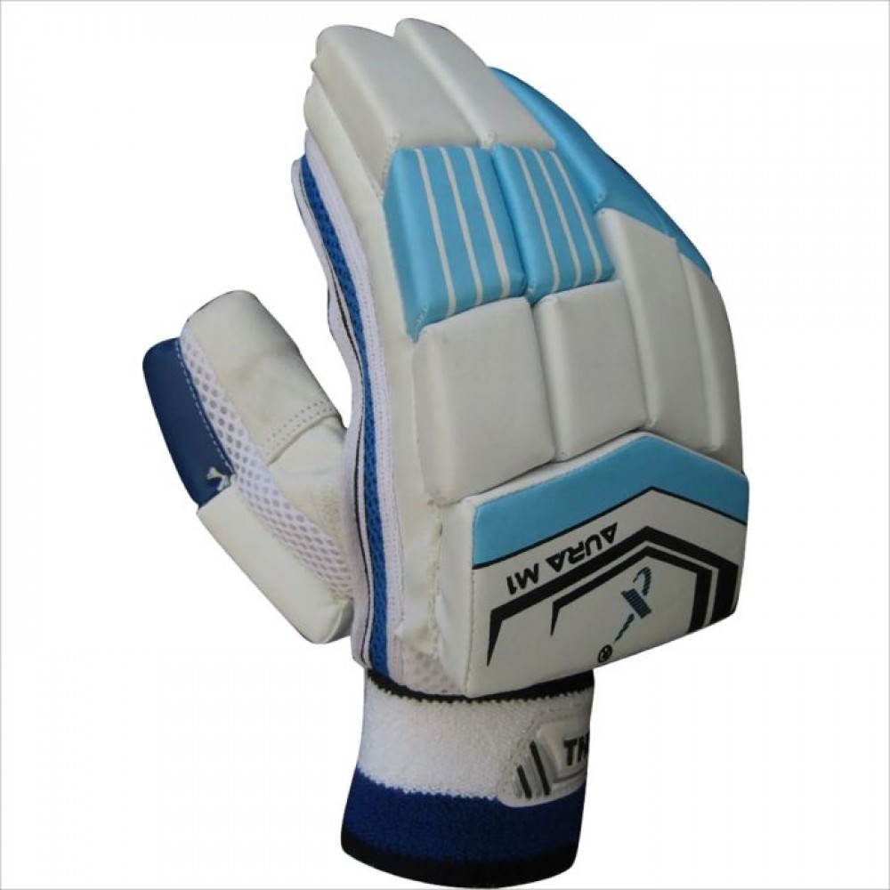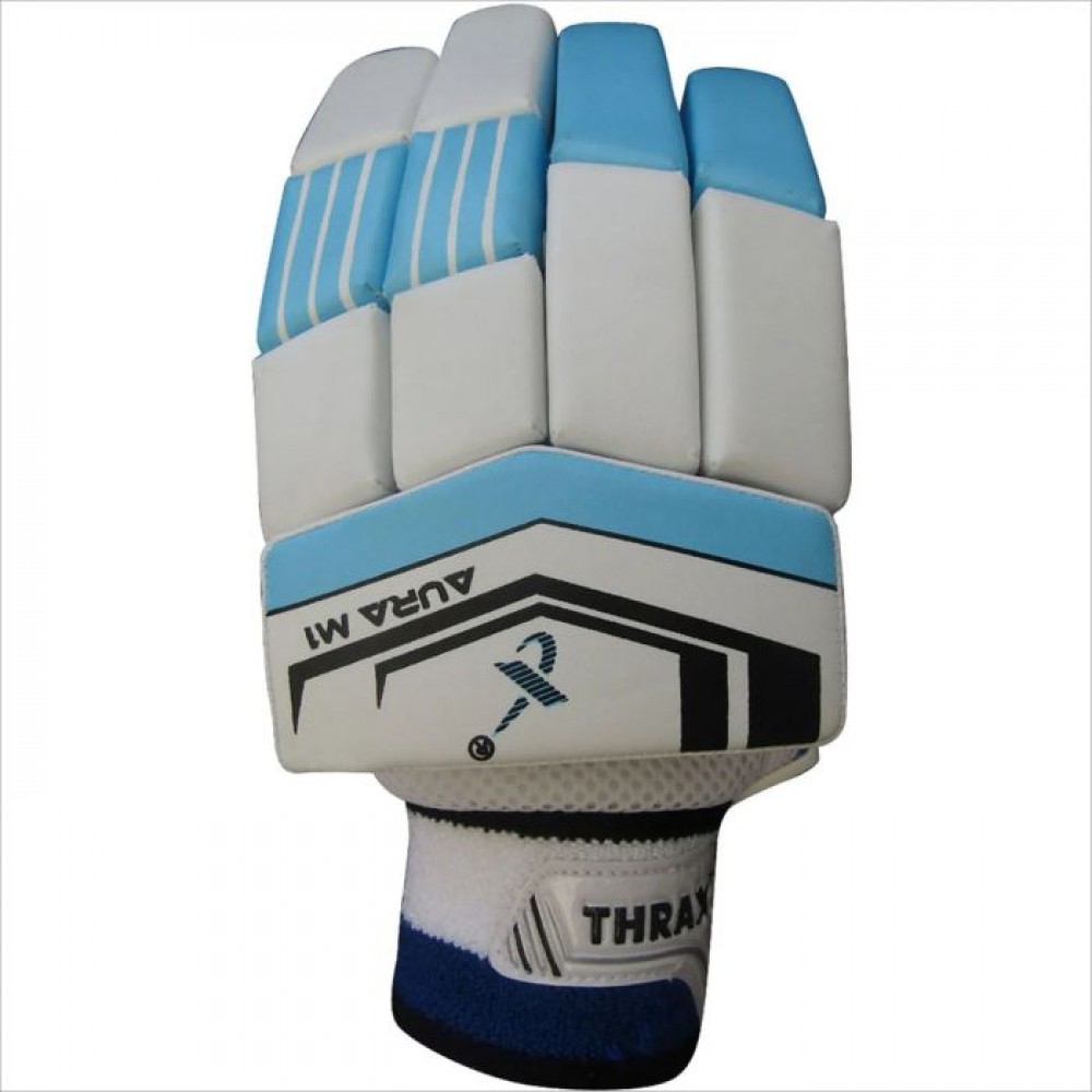 Thrax M1 Aura Series Cricket Batting Gloves Standard Size Right Hand Sky Blue and White